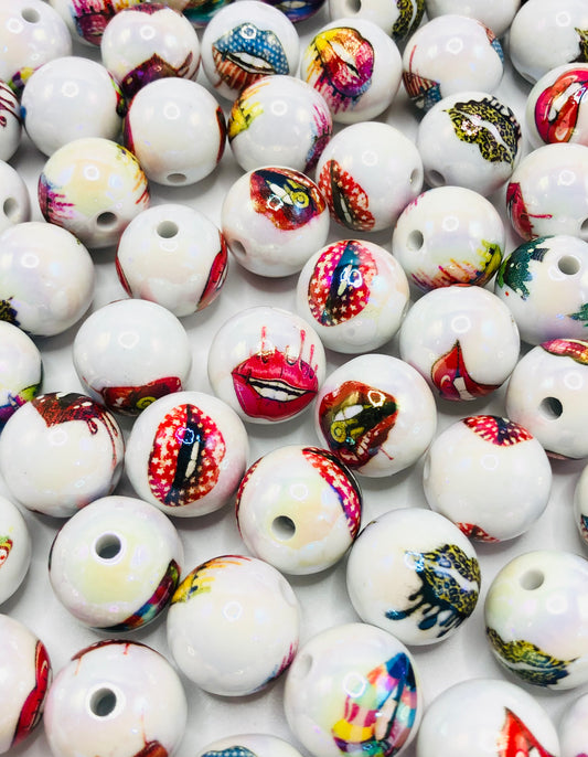 acrylic Lip print lip Lipstick mark Sex Bead 16mm Random Mix