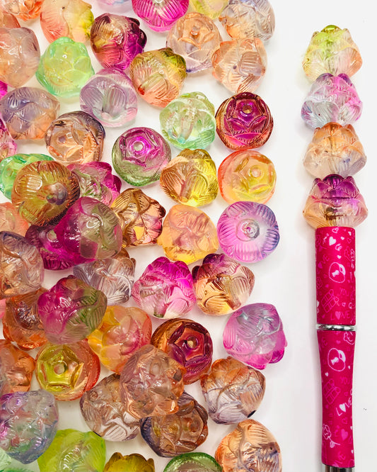 acrylic Chroma rose Flower Valentine's Day Bead 16mm Random Mix