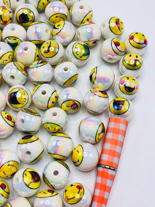 acrylic Smiling face emote funny UV Bead 16mm Random Mix