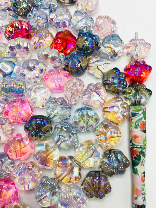 acrylic Cat's paw Bear claw Paw print Transparent color UV Bead 21mm Random Mix