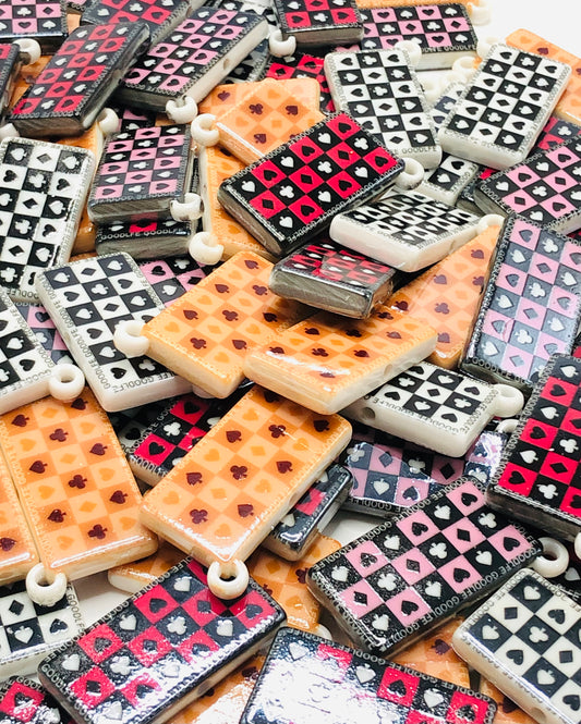 acrylic pendant strap rectangle multicolour checkerboard Poker print 40mm Random Mix