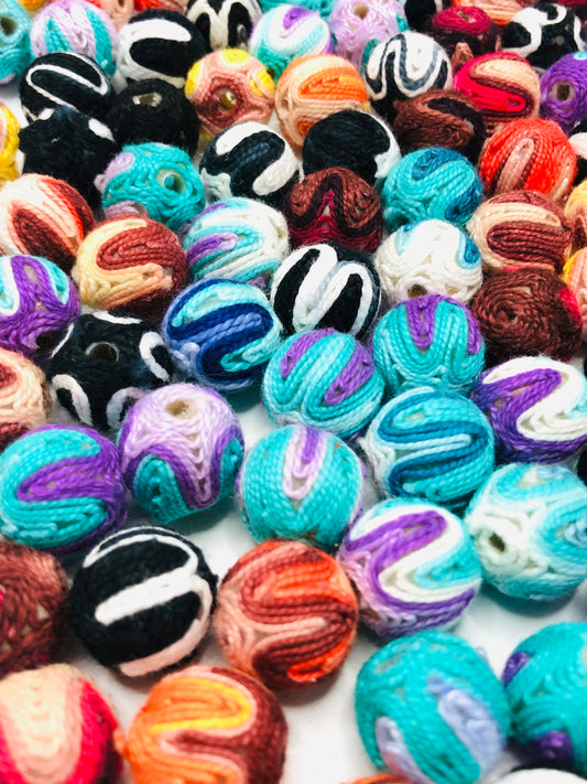 acrylic wool knit Colorful wool woven beads ombre duotone 15mm Random Mix