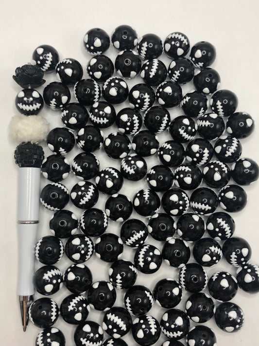 halloween series Jack face Black and white cartoon acrylic beads Random Mix 16mm