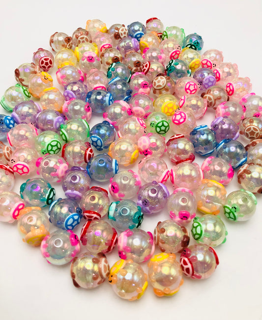 Acrylic bead Hand-painted bead Tortoise Colorful transparent beads 16mm Random Mix