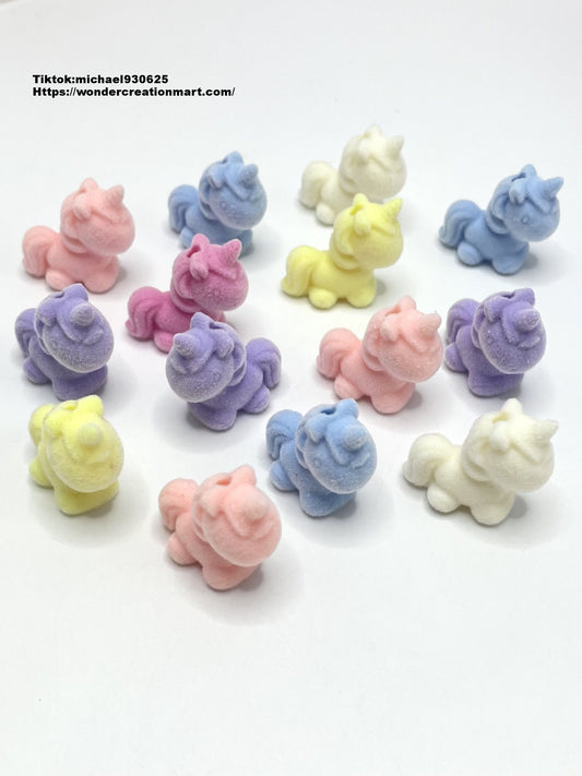 Flocked Multicolour Cute Unicorn/Horse Acrylic Beads ,Random Mix,23mm