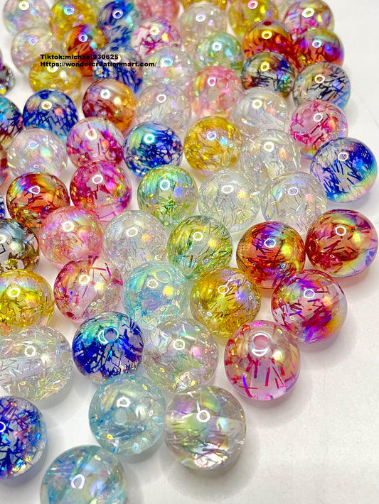 Clear Bright Multicolor with Glitter Acrylic Round Bead,Random Mix,16mm