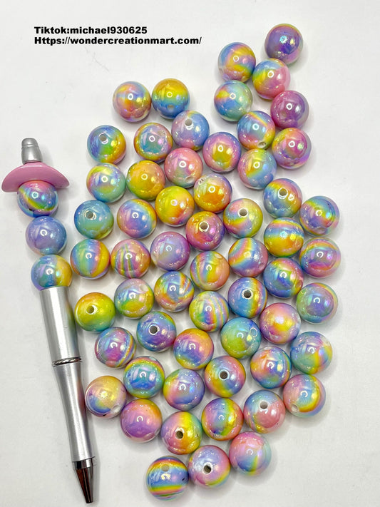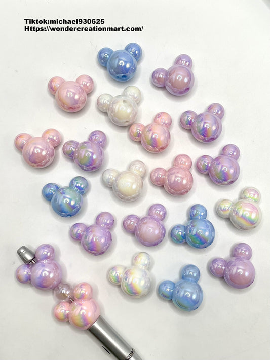 Rainbow with UV Shiny Acrylic Round and Micky Mouse Head Beads,Random Mix,16mm & 28mm