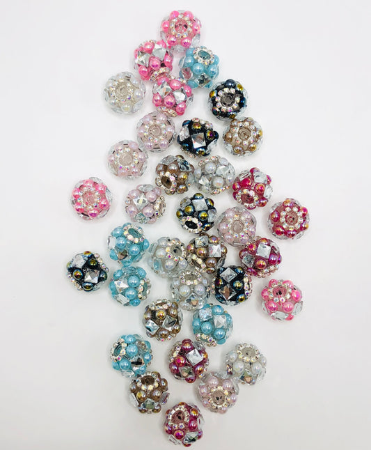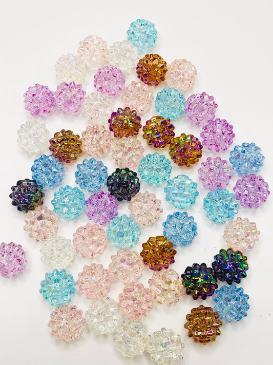 bubble Bead Transparent multi-colored acrylic beads set with gemstones 19mm Random Mix Fancy-17