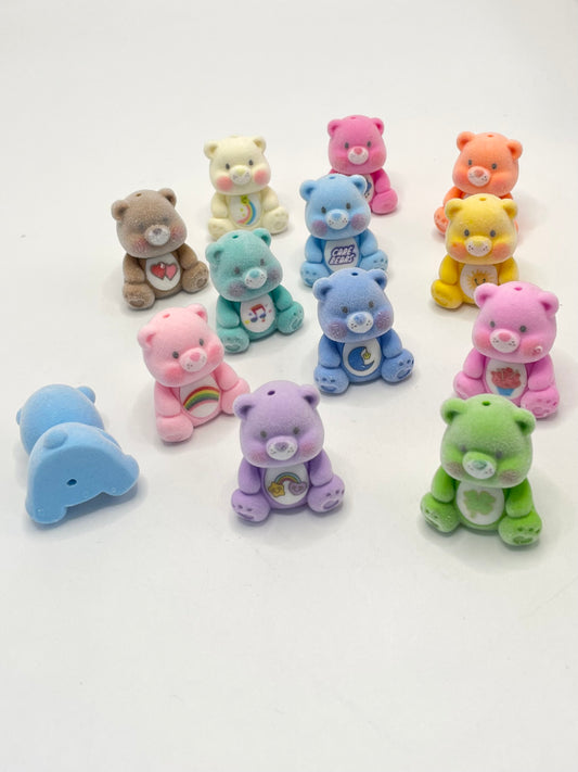 fuzzy flocked Cute Multicolour Bear Baby Acrylic Beads ,Random Mix,36mm