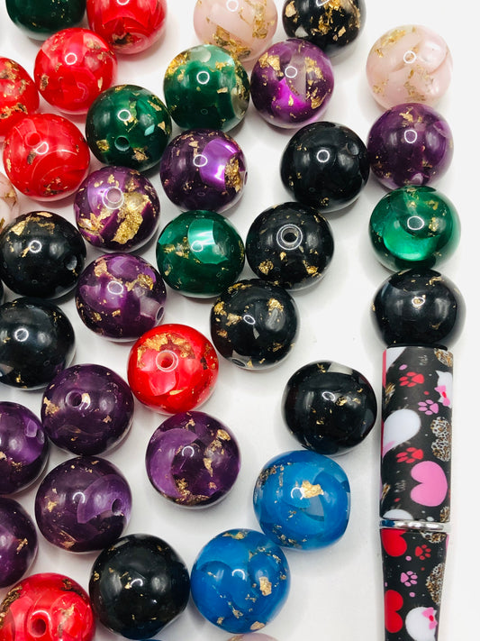 Acrylic bead glitter Gold leaf Gold flake Bead Random Mix 16mm