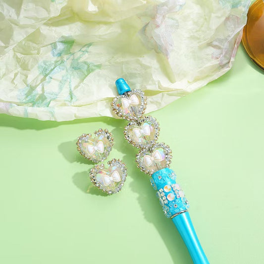Clear Heart with Bowknot Rhinestone Chain Acrylic Beads