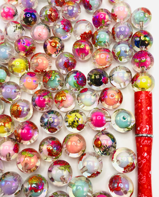 Rose bead Multicolor acrylic flower beads undertone uv Silver thread 25mm Random Mix