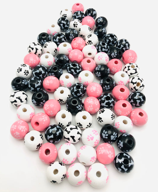 Wooden bead Multicolored paw print bone Painted wood beads Random Mix 16mm