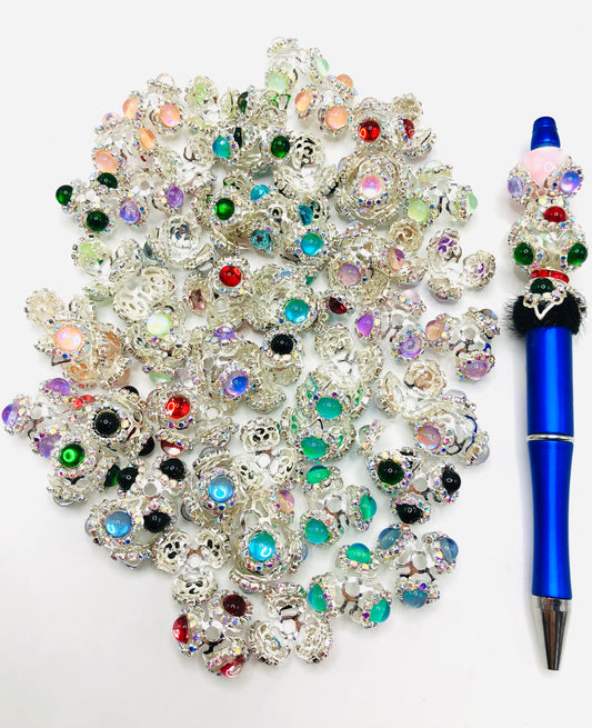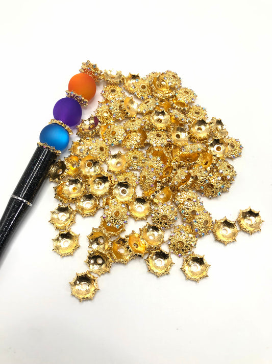 metal bead cap space star anise glitter rhinestone bead cap 15mm Random Mix