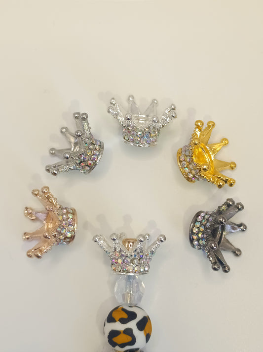 Shining Rhinestone Alloy Crown Spacer Beads Random Mix 25mm