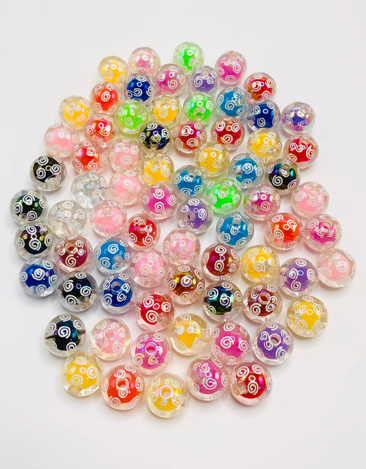 acrylic two-tone filled Christmas Snowflake and spiral Bead 16mm Random Mix