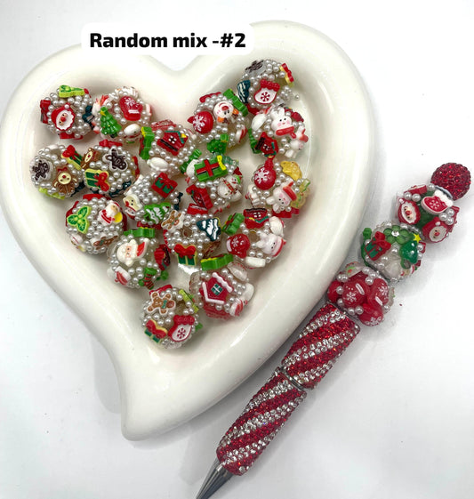 Christmas collection Fuzzy bead heart bead Random Mix 22mm