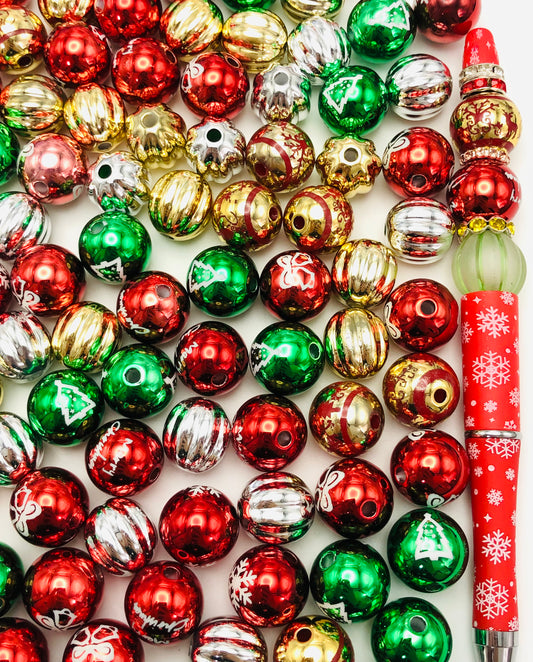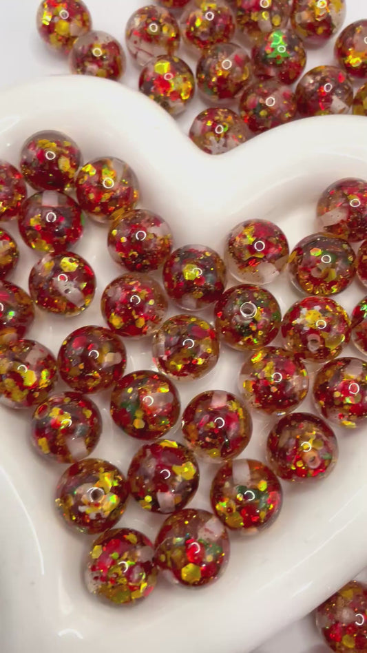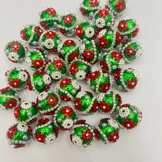 diy beaded bearable acrylic beads with the festival Christmas elements inside -green and red color ,random mix 16mm