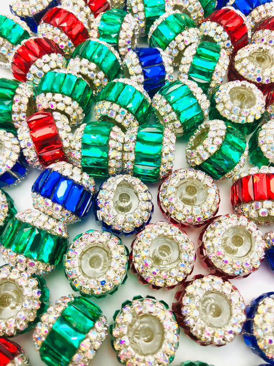 Christmas Rectangular Multicolor Crystal with Rhinestone Chain Acrylic Beads,Random Mix,16mm Fancy-23