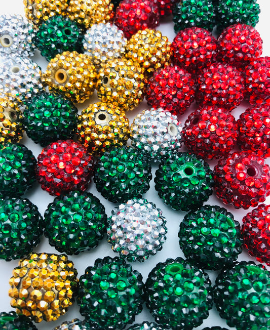 fancy Christmas Clay rhinestone bead drill ball 16mm Random Mix