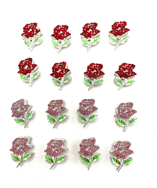 diy soft metallic glitter rose flower bead ornaments with rhinestone colored Christmas vibe ,colored ,random mix