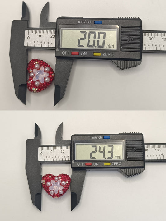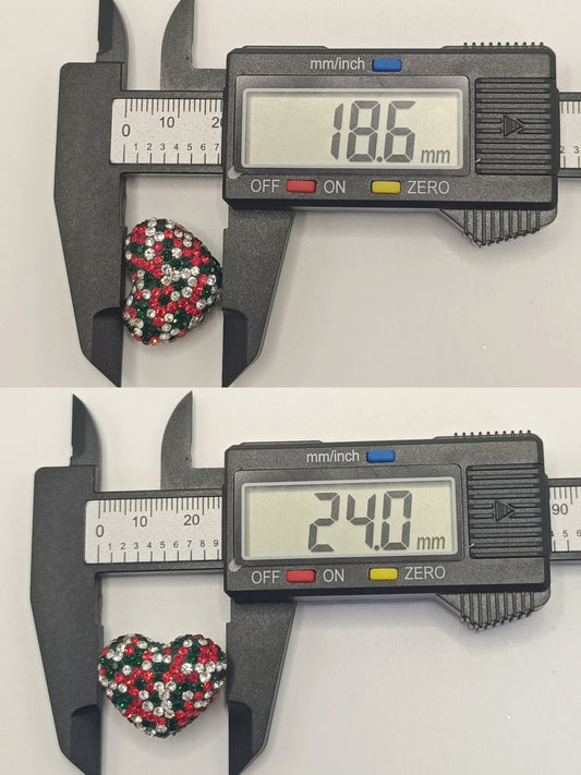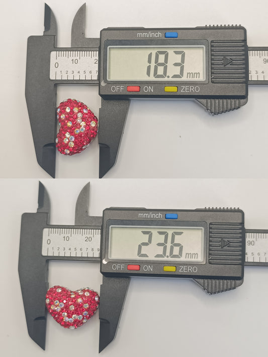 Heart Clay Beads with Diversely Rhinestones ,Random Mix,24mm by 18mm