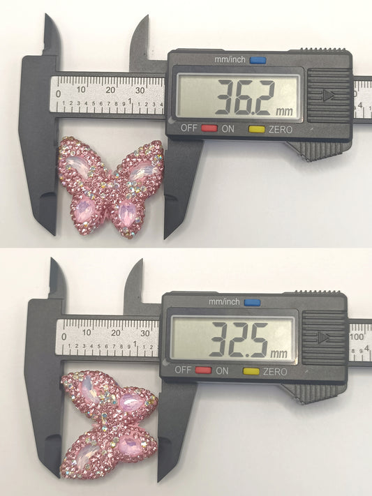 Butterfly Colored Clay Beads with Rhinestone Crystal,Random Mix,36mm by 32mm