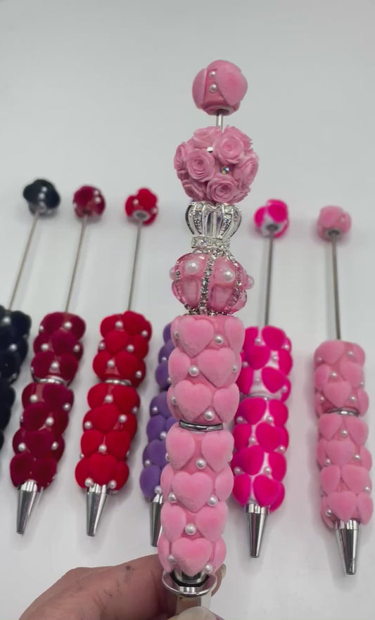 beaded beadable fancy flocked fuzzy heart pens,colored