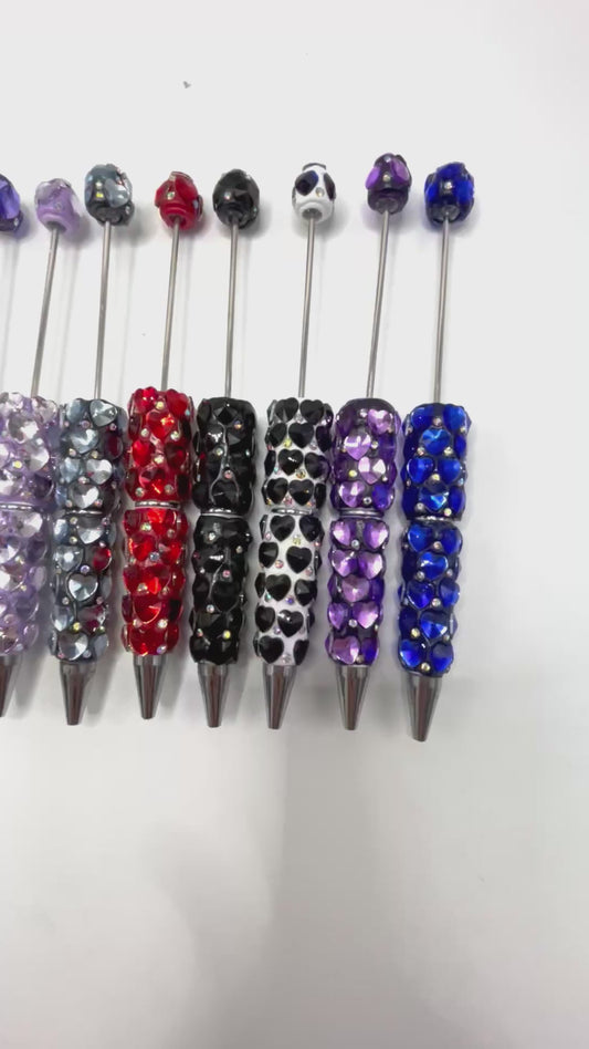 DIY PENS BEADED BEADABLE PENS WITH HEART SHAPE STONE ,COLORED