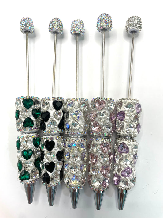 opal color clay rhinestone pen Diy Clay Rhinestone with heart shape rhinestone beaded beadable pen Rhinestone pen Bling pen, Random MiX