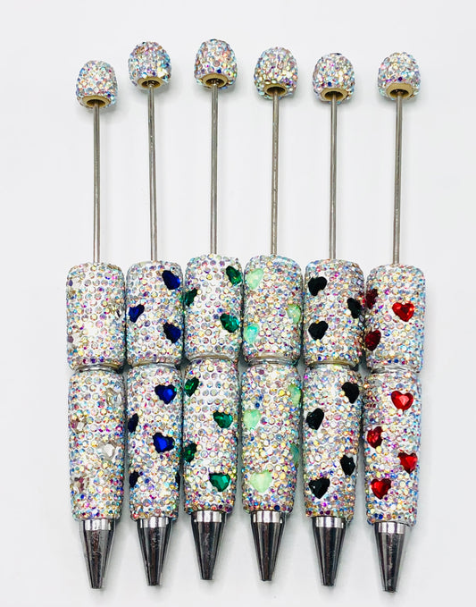 Diy Clay Rhinestonewith heart shape rhinestone beaded beadable pen Rhinestone pen Bling pen, Random MiX