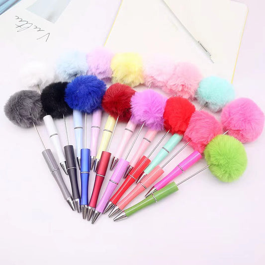 Colored Fluffy Pom Pom Balls with beadable pen (in the top )