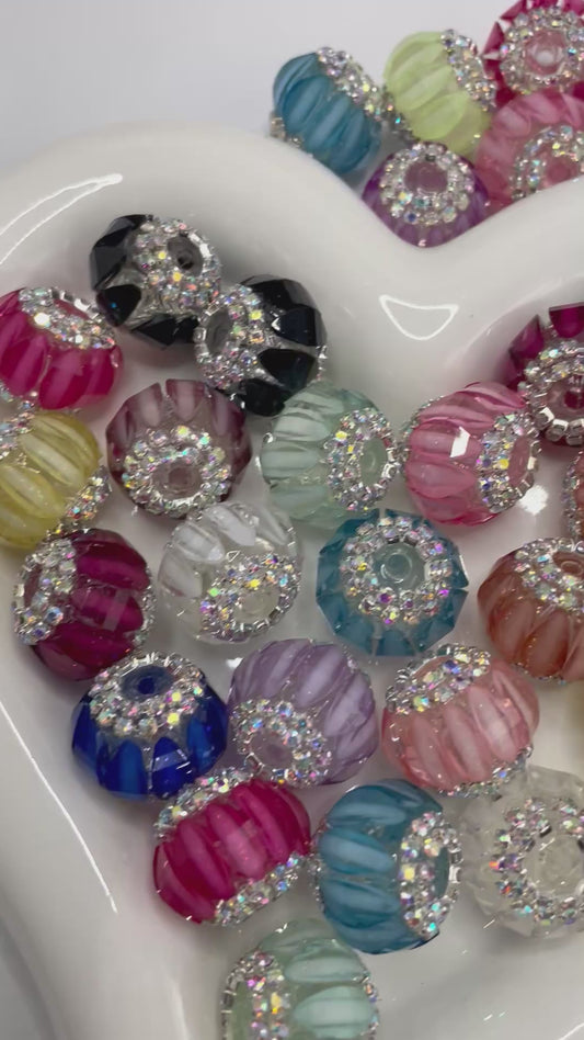 Fancy Lantern Bead Multicolor Color Clear Lantern Acrylic Beads With Rhinestone Chain,Random Mix,18mm Fancy-13