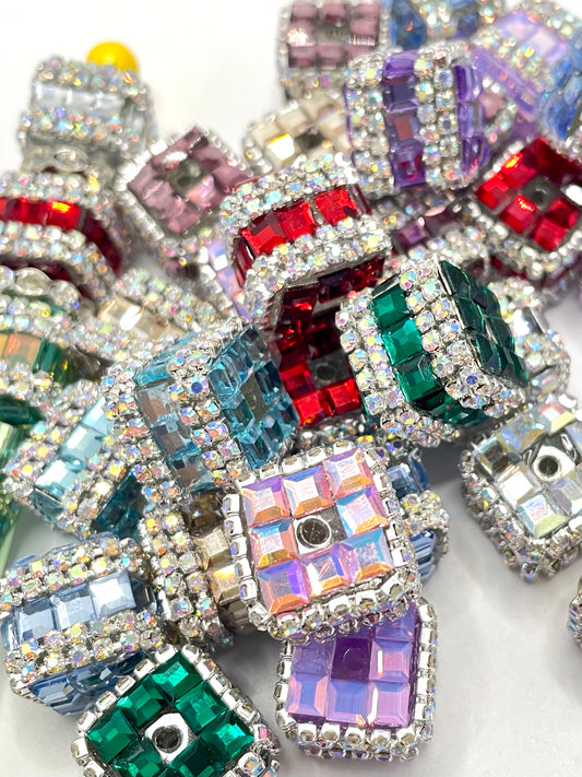 Fancy Square UV Crystal with Rhinestone Metal Chain Acrylic Beads,Random Mix,16mm Fancy-44