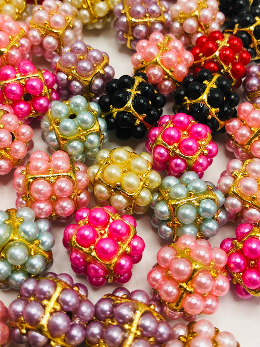 Fancy square Alloy bead Pearl bubble 15mm Random Mix