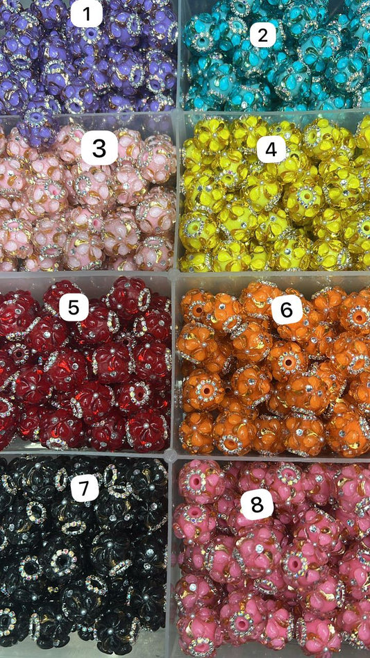 Sanri Clear Rhinestones with Flower Acrylic Round Beads,Random Mix,20mm Fancy-11