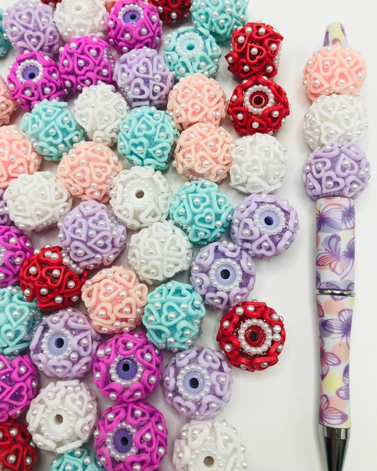 acrylicHollow heart rhinestone Pearl Pearl ring Colorful heart Bead Random Mix 21mm