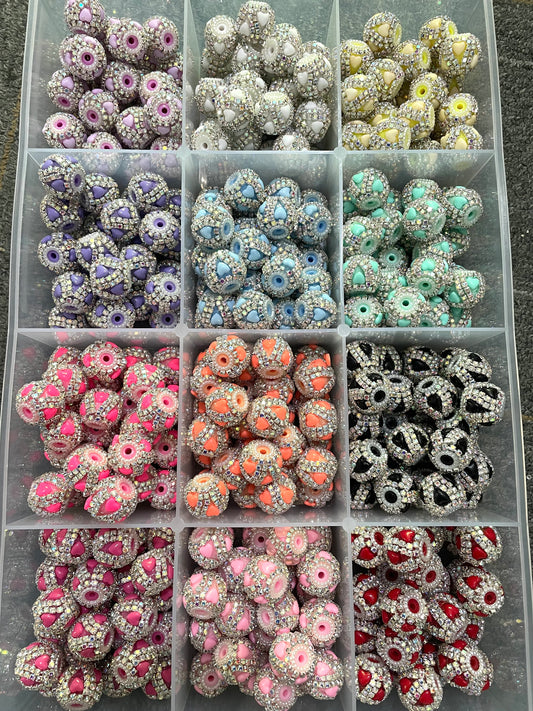 fancy bead ornaments with double rhinestone chain solid color acrylic heart pearl ,diy bead,random mix color