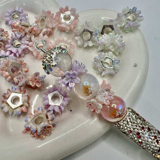 Three-dimensional flower UV Resin bead with hook loop attach to charm ,Random Mix 25mm