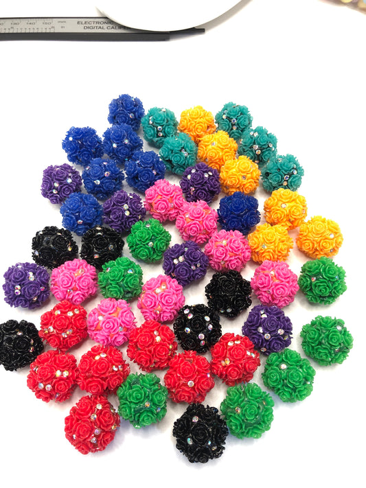 Fancy Clay Rhinstone Flower bead Multicolor flower beads Random Mix 22mm