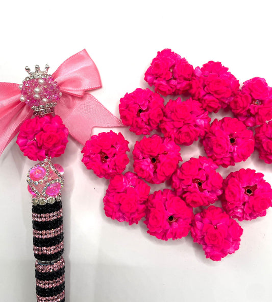 fancy clay bead flower rose flower with rhinestone pearl colored flower neon color,randomix