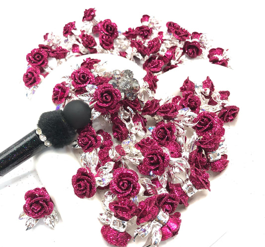 alloy metallic fancy rose flower with the glitter powder on petal fancy beads,colored radom mix