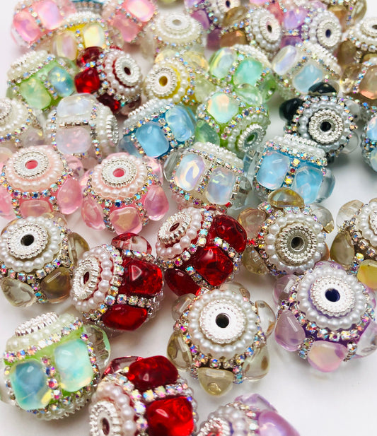 Colorful Acrylic Beads with Clear Rhinestones and Chains,Random Mix,19mm