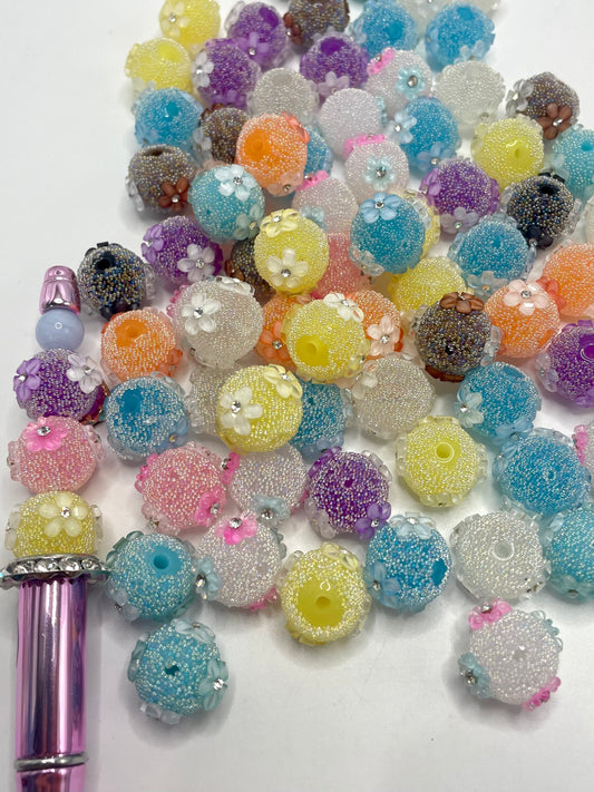 Bubble Beads with Flower Multicolor Acrylic Beads,Random Mix,16mm