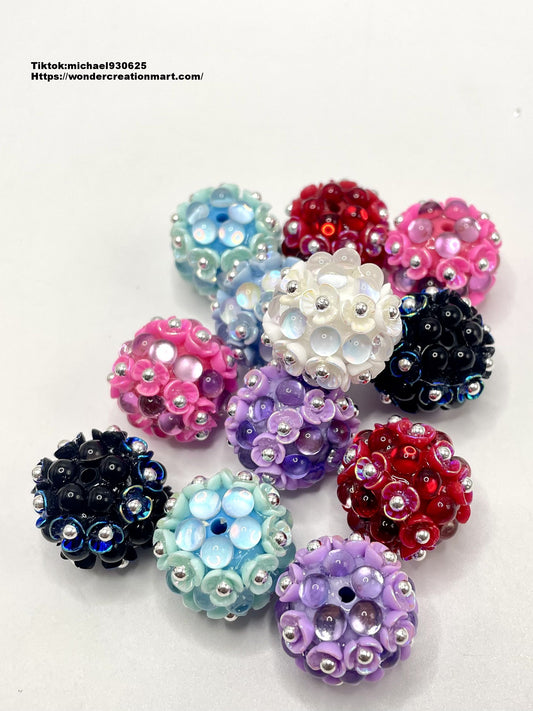 diy beads diy soft flower bead ornaments with rhinestone,colored ,random mix