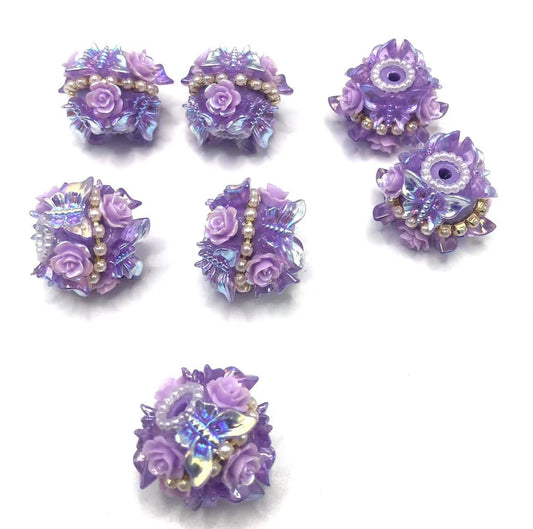 Butterfly Acrylic beads Butterflies with roses and pearls Multicolored beads Random Mix