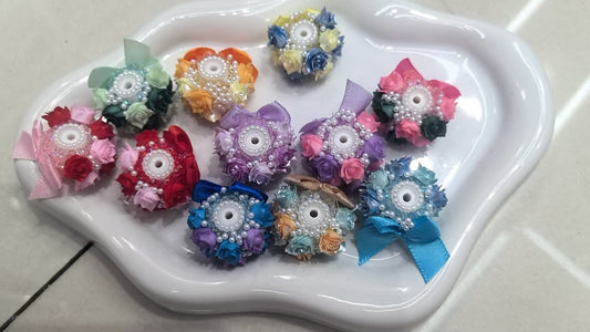 metallic looking bow flower with heart flower bead clay base bead with rose flower and bow with pearl colorful ,random mix