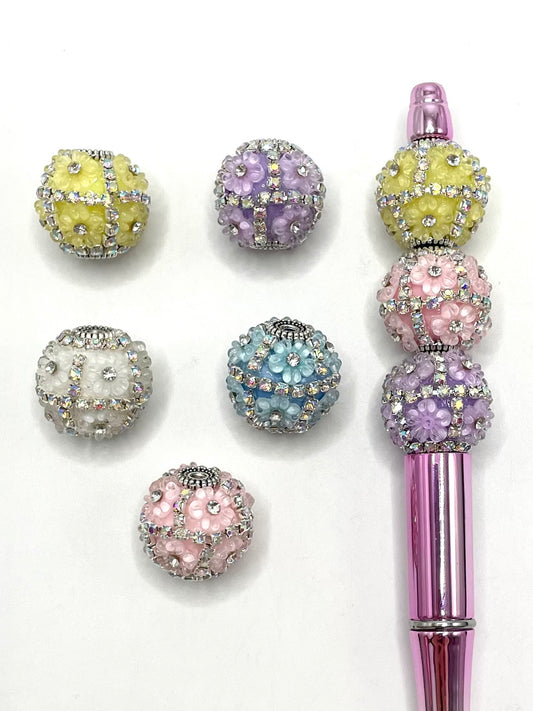 Fancy Soild and Clear Flower with Rhinestones Clay Round Beads,Random mix,18mm Fancy-467