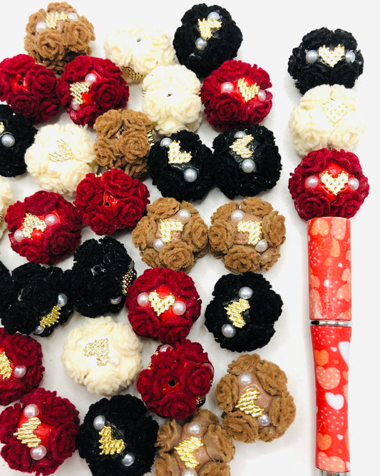 Flower bead Metal heart bubble Flocked flower beads Fuzzy Chroma Flower Bead 23mm Random Mix