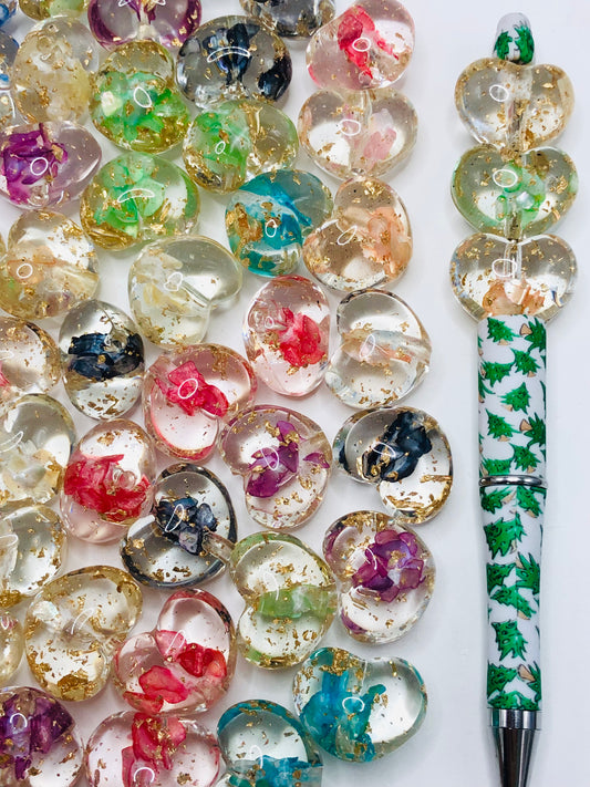 acrylic Heart acrylic Bead glitter Dried flower Gold leaf Bead 23mm Random Mix